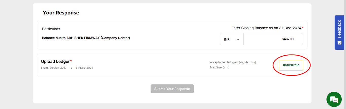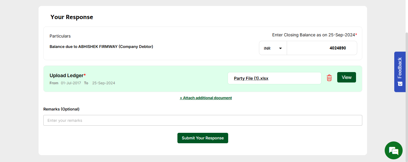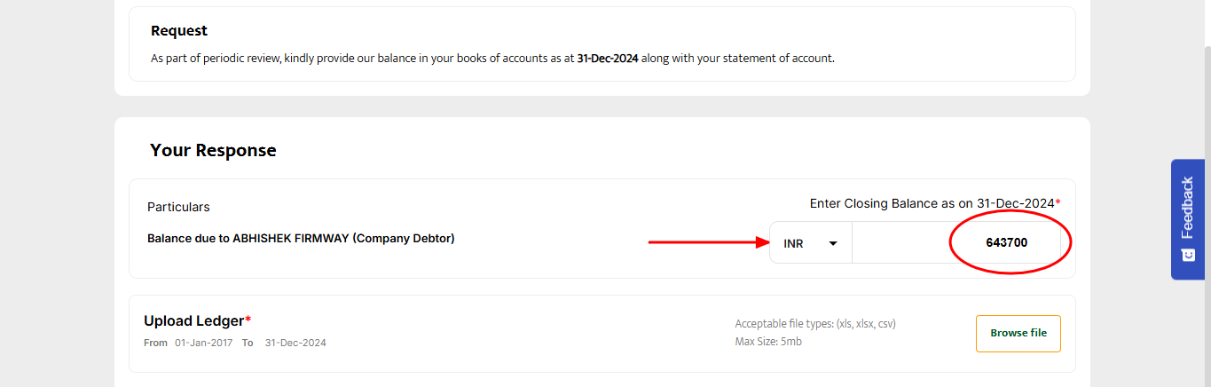Upload Ledger- Attach a ledger for the requested period. Ledger should have opening balance, during the year transaction and closing balance.