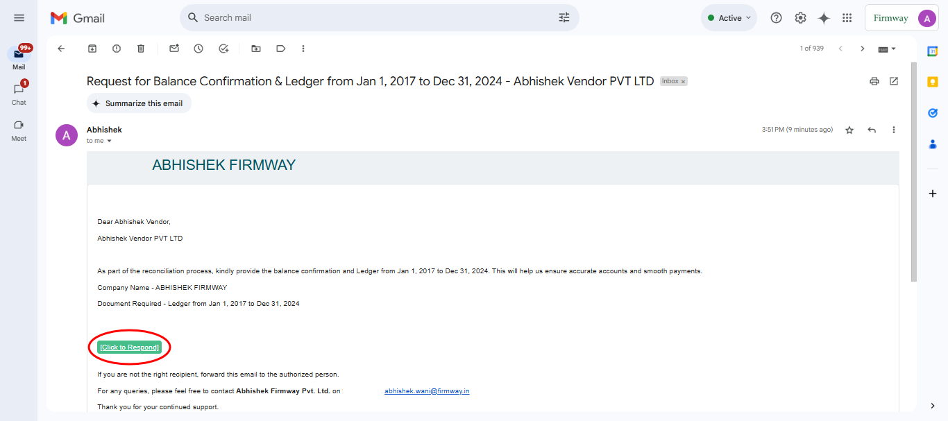 This redirects you to the Firmway Portal where you will see balance confirmation details.