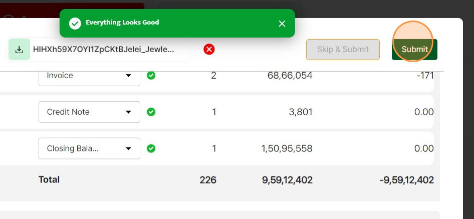 9. Once all errors are resolved, Submit the mapping. 10.After submission, the file will be uploaded. If you need to add an additional file, you can do so before clicking to confirm.
