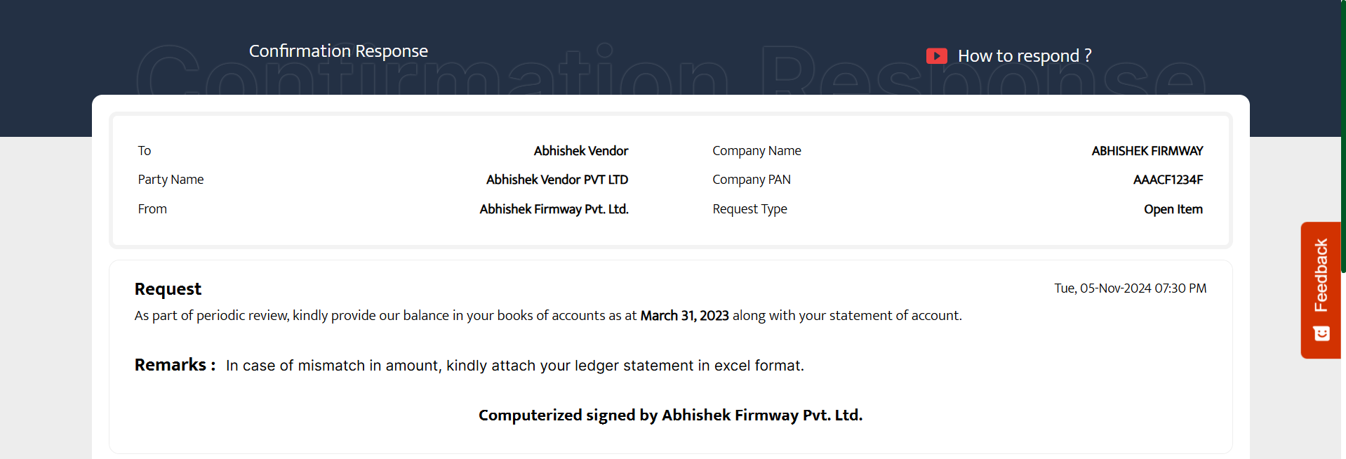 How to Respond to Balance Confirmation and Share Outstanding Items (without balance)