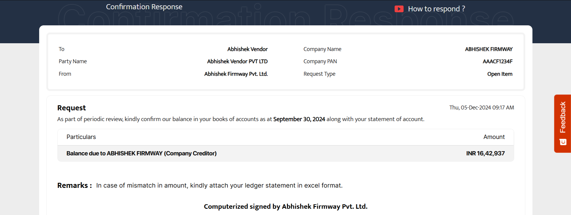 How to Respond to Balance Confirmation and Share Outstanding Items (with balance)